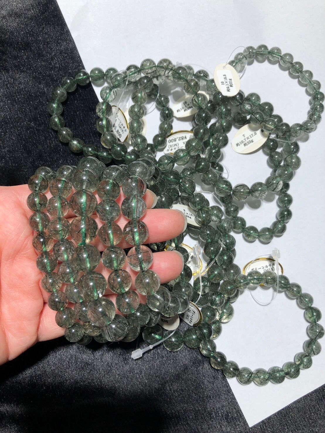 いろんなルチル、カイヤナイト、翡翠ラリマー、グリーンルチル、ブルームーンストーン、サンストーンのブレスレットをサイズが多い為Instagramの配信で詳細を見てメルカリの出品で支払いという形で販売しております